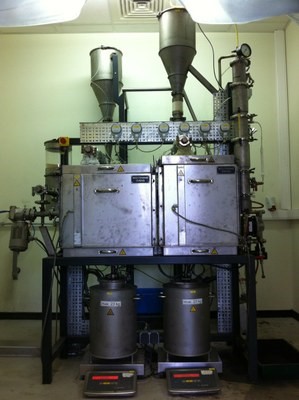 Fast pyrolysis experiments are carried out in a fully controlled, continuously operated mini-plant designed and constructed by Biomass Technology Group B.V., BTG (Enschede, The Netherlands) based on the auger reactor technology. Three types of biomass fast pyrolysis experiments were performed in this set-up, viz. non-catalytic (using hot sand as the heat carrier), in-situ catalytic fast pyrolysis (using mixtures of sand and catalyst as heat carrier), and ex-situ upgrading of non-catalytic fast pyrolysis vapours by means of a downstream, moving-bed catalytic reactor. The mini-plant enables the production of larger bio-oil samples (typically 0,3 kg/hr) suitable for full characterization.
