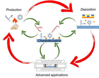 Apparently, there is a broad gap between on the one hand research on the thermochemical conversion of biomass into functional carbonaceous materials, and on the other hand tailoring of solid surfaces through thin film deposition. CARBONS (catalyzing research on biochar to obtain new surfaces) aims to surface engineer biochars and other carbon materials by deposition of thin metallic films and nanoparticles for catalytic applications in renewable energy production. Therefore, two research groups (TCCB and DRAFT) engage in a close collaboration. Both teams will bring in their expertise on the studied materials i.e., carbon surfaces and metal nanoparticles/thin films, and will use together surface characterization tools to understand the formation of nanoparticles/thin film on carbon surfaces and their anchoring with these surfaces. The integrated approach is depicted in the figure below. Key in this project proposal is the characterization of the surfaces obtained in every step, mainly through X-ray photoelectron spectroscopy (XPS), complemented with other techniques such as electron microscopy and FTIR spectroscopy. Both teams will benefit from the expertise of the other and the obtained information on the characterization to expand their knowledge in their respective fields. TCCB will expand their knowledge in understanding the connection between the biochar properties and the production process, whereas DRAFT will expand their knowledge in the interaction between deposited thin films/nanoparticles with the functionalized biochar surface, and the behavior of biochars in high vacuum deposition. My main role as researcher is to investigate (i) how biochar production temperatures affect their functionality, (ii) how this functionality affects metal deposition and (iii) how metal deposited chars perform as catalyst for e.g., methanation of hydrogen gas and carbon dioxide.