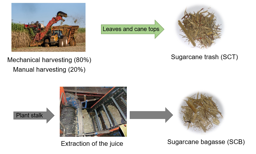 Annual sugarcane production in Cuba is currently about 25 million metric tons a year. The main residues from sugarcane processing include bagasse and sugarcane agricultural residues. Sugarcane bagasse is the fibrous material that remains after recovering the sugar-containing juice after crushing and extraction. On the other hand, the use of mechanical harvesting also generates a significant amount of plant residues (i.e. leaves), hence denoted as sugarcane agricultural residues or trash.