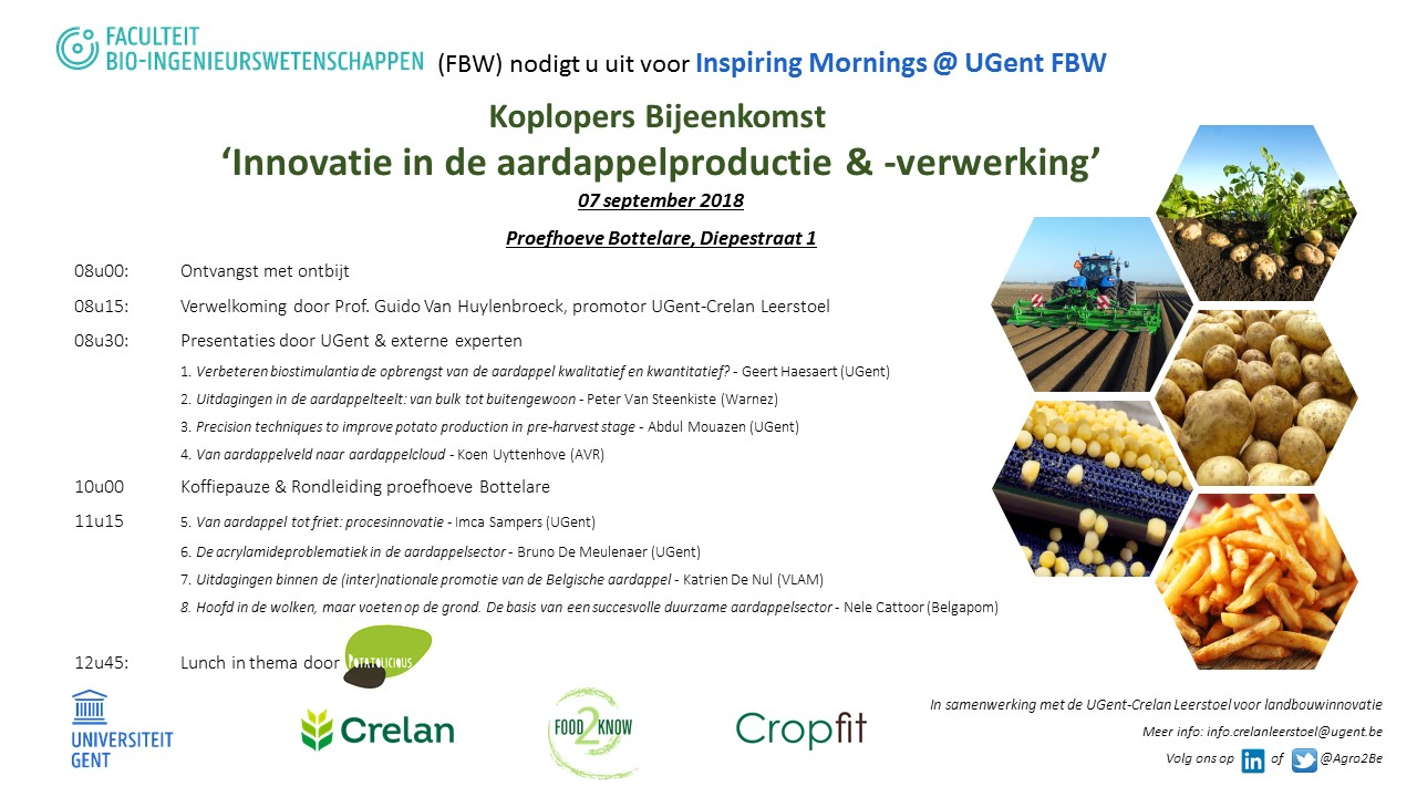 Bevestigde stakeholders: Agristo, Aviko Potato, AVR, Bart’s Potato Company bvba, Bayer Crop Science, Belgapom, Boerenbond, Cargill, CNH, Colruyt Group, Crelan, Dewulf, Eurofreez (Aviko), Flanders'FOOD, Food2Know – Ugent, Grimme-Belgium, Grimme-Belgium, ING, Lutosa, Mydibel, PCA, PCvPL, Perdum, Remo-frit, Syngenta, Timac Agro, UGent, Van den Borne Aardappelen, Veg-i-Tec, VILT, VLM, VLAM, Warnez