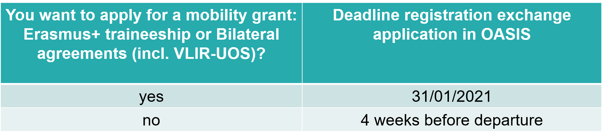 7. Application mobility grant (destinations outside Europe, including VLIR-UOS)