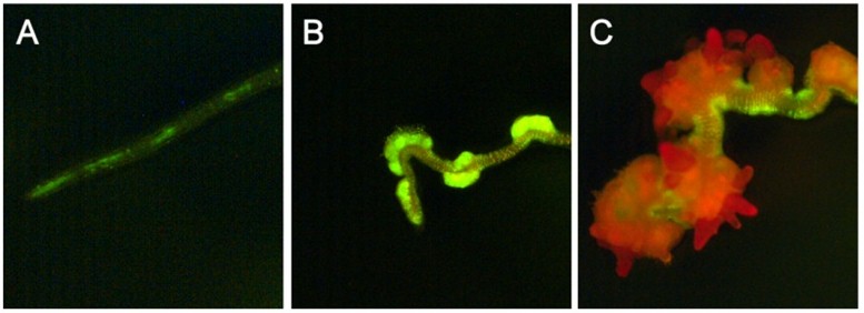 GFP expression in an early shoot meristemExpression of LSH4 in Arabidopsis root explants during shoot regeneration on shoot inducing medium (from Motte et al., 2013)