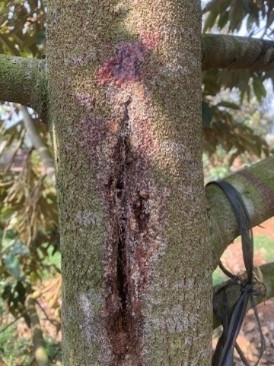 Durian (Durio zibethinus L.) is a crop that brings high economic value to farmers in the Central Highlands of Vietnam. Currently, many factors cause a decline in the growth of durian trees, and stem canker disease is one of the leading causes of poor growth of durian trees, which can lead to tree death and reduced productivity. This research aims to find the causes of diseases causing the decline in durian trees in the Central Highlands of Vietnam. Besides that, investigate their pathogen's sensitivity to fungicides and develop effective control measures with less negative environmental impacts.
