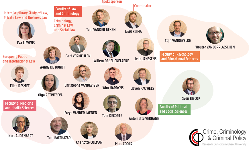 The consortium brings together 21 professors and their staff from different disciplines in six departments working inter-disciplinary on security, crime and deviance related topics in local, national, European and international contexts. In close cooperation with several Ghent University based research institutes the consortium combines available knowledge and expertise at Ghent University.