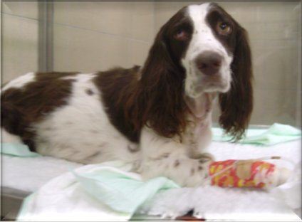 Tjoedo is een Heidewachtel van 6 jaar oud die graag met stokken speelt. Dit liep recent helaas niet zoals hij gepland had: de stok doorboorde zijn gehemelte en veroorzaakte nog enkele wonden in zijn bek. Hij begon meteen te bloeden uit zijn bek, waarop de eigenaars naar de dierenarts gingen die de wondjes spoelde en hechtte. Alles leek daarmee opgelost en Tjoedo ging vrolijk terug mee naar huis. Echter, niets was minder waar…