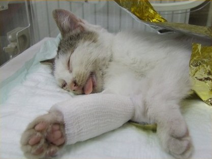 Vlokje is een kater van 5 jaar die graag op muizenjacht gaat in de weilanden rondom zijn huis. Afgelopen zondag kwam Vlokje thuis met een wondje aan de poot wat maar bleef bloeden. Na twee dagen was dit nog steeds niet gestopt en zijn de eigenaars naar de dierenarts gegaan.