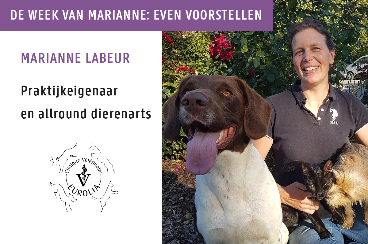 Ik ben Marianne Labeur, eigenaar van gemengde dierenartsenpraktijk ‘Clinique veterinaire Eurolia’, met momenteel 8 dierenartsen in dienst. Ik behaalde mijn diploma in Gent in 1999, optie paard. Vervolgens deed ik enkele vervangingen in België, waarna ik in de winter van 2000 in Frankrijk ben gaan werken. Hier kwam ik voor het eerst echt in contact met rundvee geneeskunde. In de zomer daarop deed ik een vervanging op het gebied van kleine huisdieren. Zo ben ik in de praktijk terecht gekomen waar ik nu nog steeds werk, als allround dierenarts. Ondertussen werk ik al 20 jaar in deze praktijk in Frankrijk. De ruimtelijke omgeving en de fijne werksfeer hebben mij overtuigd om hier te blijven!