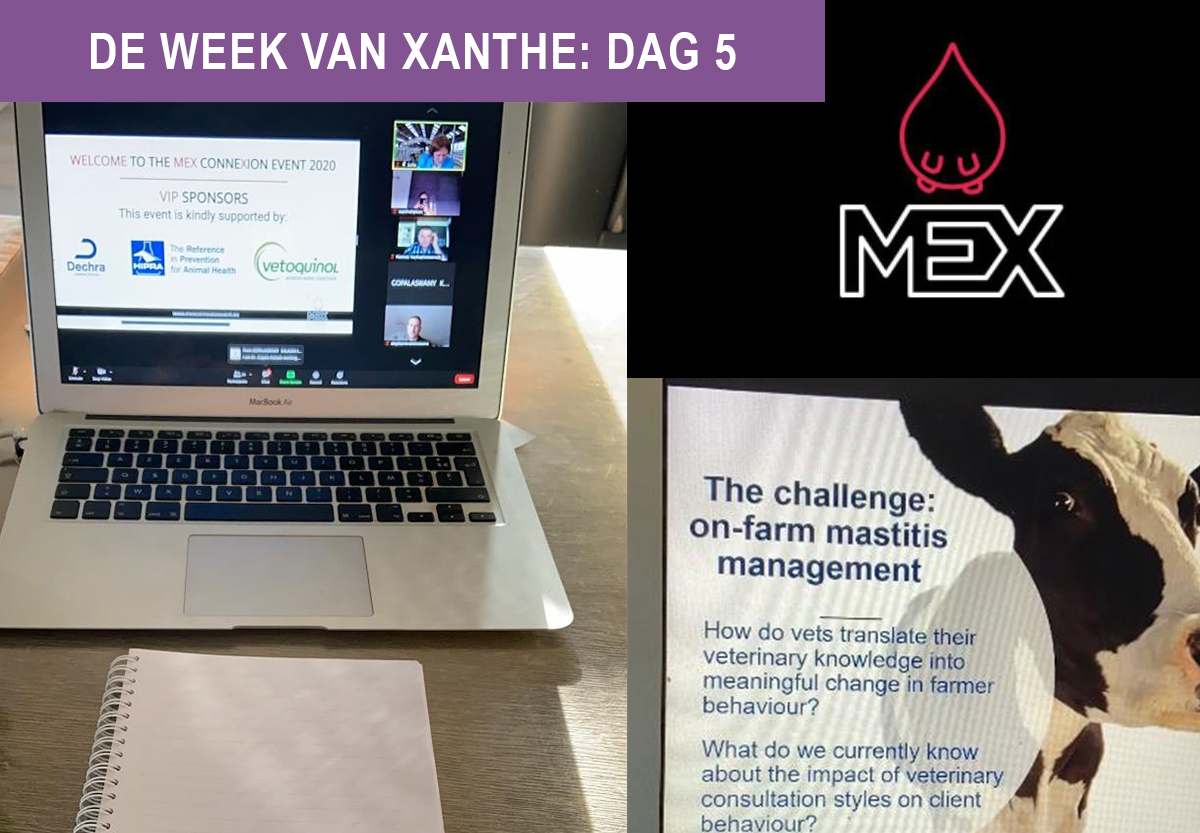 Vandaag sluit ik mijn dag af met het online MEX CONNEXION Event. Deze online sessie wordt georganiseerd door het MEX-team, die zich specialiseren in uiergezondheid bij melkvee. Strategische behandeling van mastitis, verantwoord antibioticumgebruik, beddingmateriaal en communicatiemanagement omtrent veterinair advies komen aan bod. Ik hoop vandaag veel bij te leren, om op die manier onze veehouders beter te kunnen helpen wanneer er zich een probleem met uiergezondheid voordoet. Knowledge is power, but enthusiasm pulls the switch!