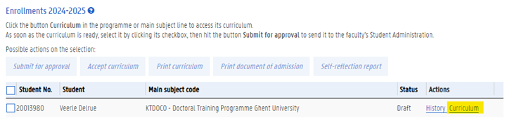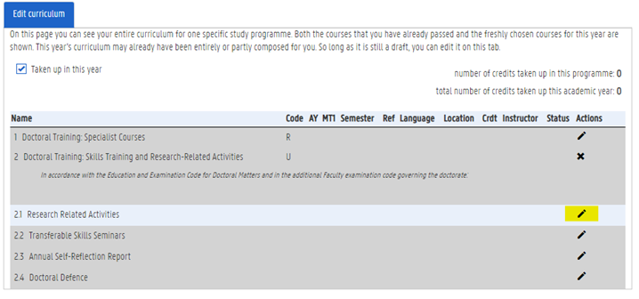 Log in to OASIS and select ‘Edit curriculum’ (left column) for the current academic year, then click "Curriculum" under "Actions"