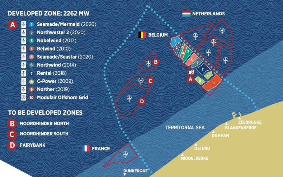 Figure 1. Belgian Offshore Wind Farms, Source: FAQ – Belgian Offshore Platform