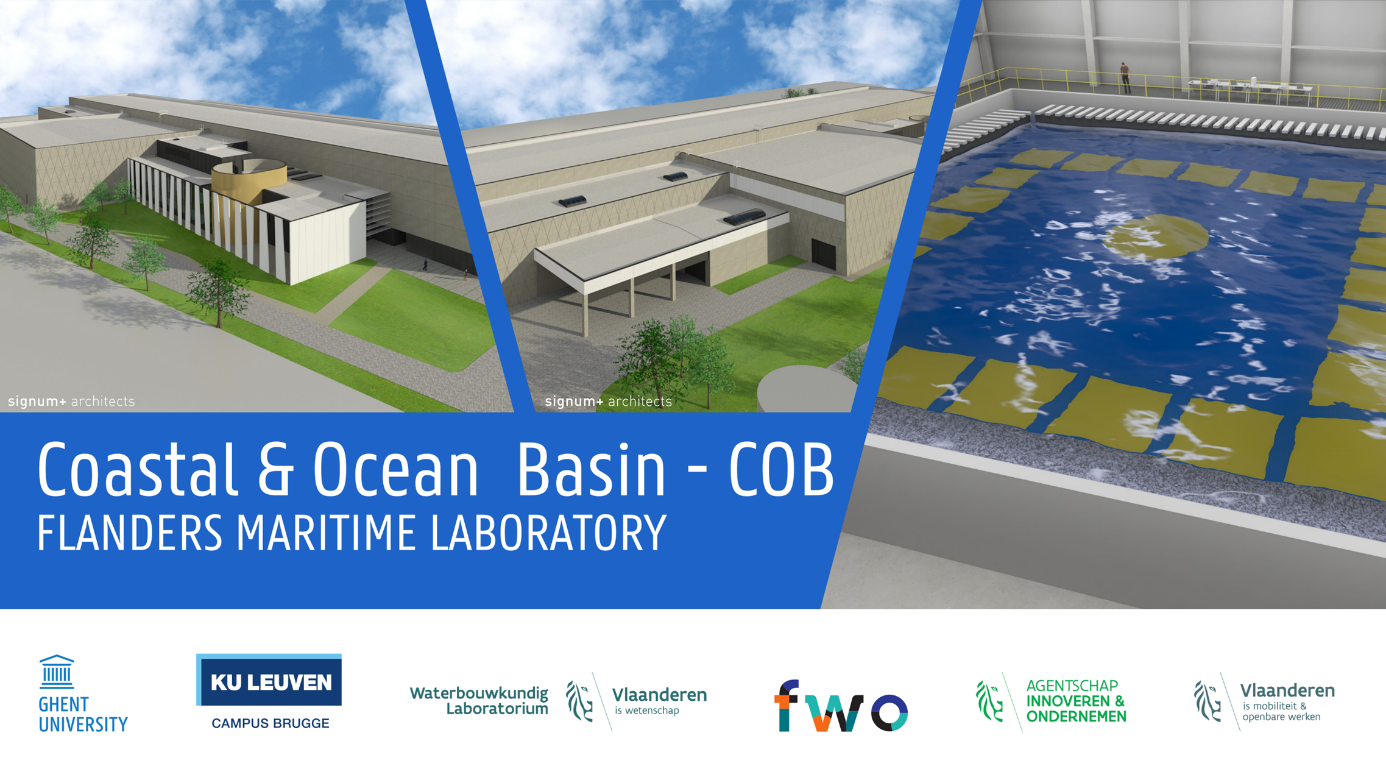 Ghent University, the Catholic University of Leuven and Flanders Hydraulics Research will use the "Coastal and Ocean wave Basin (COB)" (dimensions: 30m x 30m x 1,4m) to study the impact of waves, tides and wind on coastal structures and to study Marine Renewable Energy solutions. The basin is planned to be operational in 2O21.