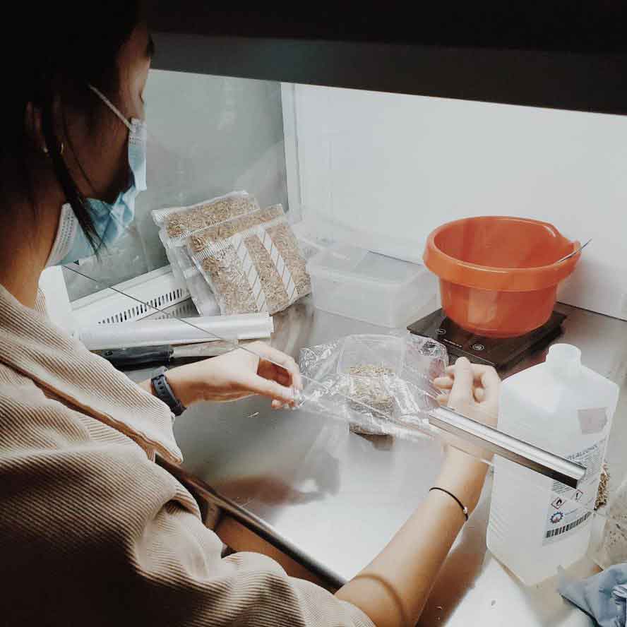 In het Bio-Makerspace combineren we DIY en GIY (grow it yourself) materialen met verschillende transformatie technologieën. Onze experimenten richten zich op het ontdekken van mogelijke toepassingen van bestaande front-end materialen. Ons doel is om de expertise van onze studenten Industrieel Ontwerpen, UGent Campus Kortrijk te verhogen naar de implementatie en het hergebruik van biogebaseerde bijproducten in hun ontwerpproces en -resultaten.
