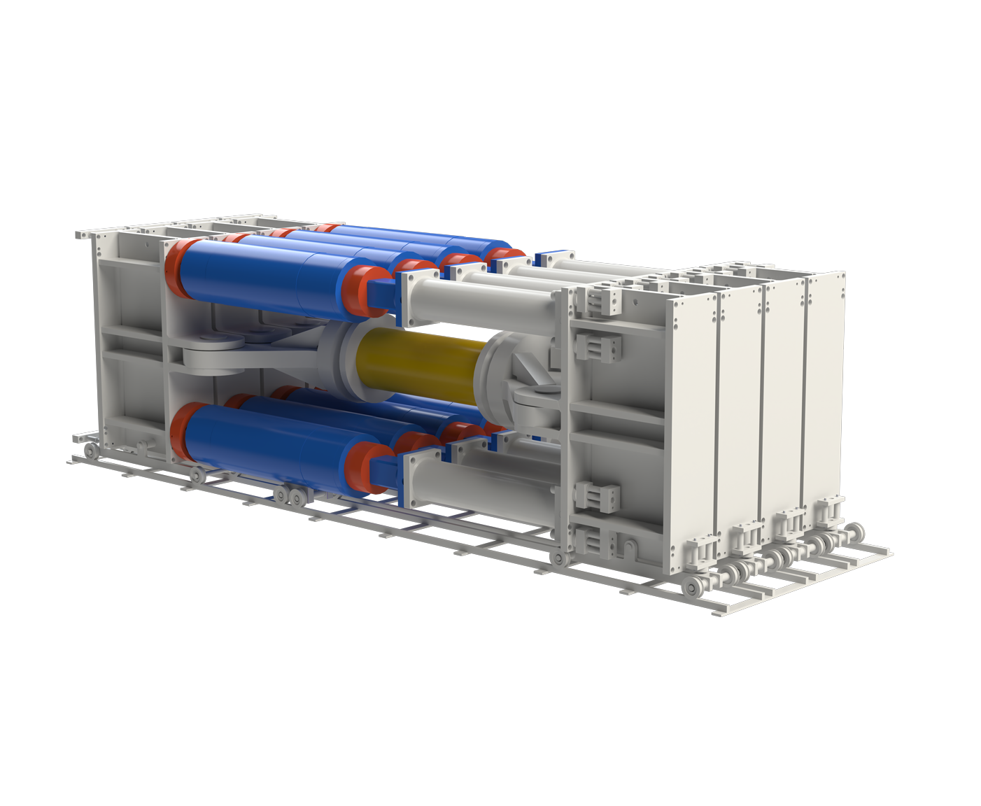 The tensile force is obtained through displacement-controlled hydraulic pistons. Specimens can be cooled and are extensively instrumented. Measured quantities include: