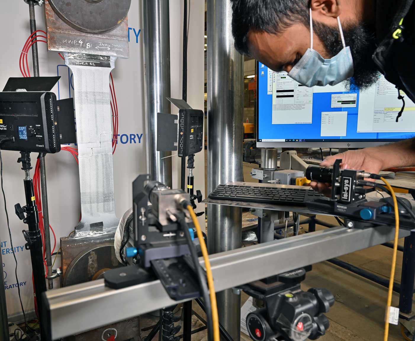 - Strains in separate sections of the specimen and global strain (LVDT’s)