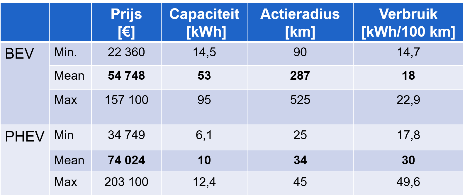 Kleinere batterijcapaciteit dan een BEV dus kleiner elektrisch rijbereik.
