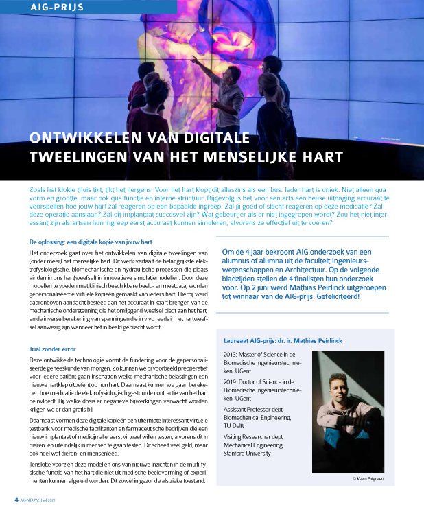 Promotoren: prof. dr. ir. Patrick Segers, dr. ir. Matthieu De Beule, em. prof. Benedict Verhegghe". More info about the price on: https://aig.ugent.be/prijzen/aig-prijs/