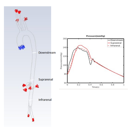 Figure 3 shows pressures obtained using a fluid only simulation of the 30 year old Aorta in the Thoracic, Suprarenal and Infrarenal Aorta.