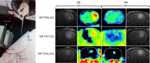 Discriminating high-grade glioma from radiation necrosis in rats using kinetic modeling and graphical analysis with three different PET tracers: 18F-fluoromethylcholine (FCho), 18F-fluoroethyltyrosine (FET) and 18F-fluorodeoxyglucose (FDG).