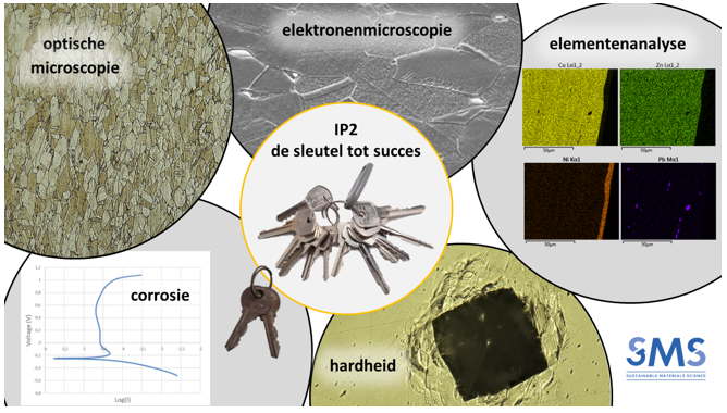 In dit onderdeel van ingenieursproject 2 onderzoeken we de eigenschappen van dagdagelijkse voorwerken en beredeneren we waarom bepaalde materiaalkeuzes gemaakt zijn. Dit academiejaar lag de focus bijvoorbeeld op sleutels. Visualisatie van de microstructuur met microscopen, bepalen van de hardheid en bepalen van de corrosie-eigenschappen zijn enkele zaken die in dit praktijk gericht project aan bod komen.
