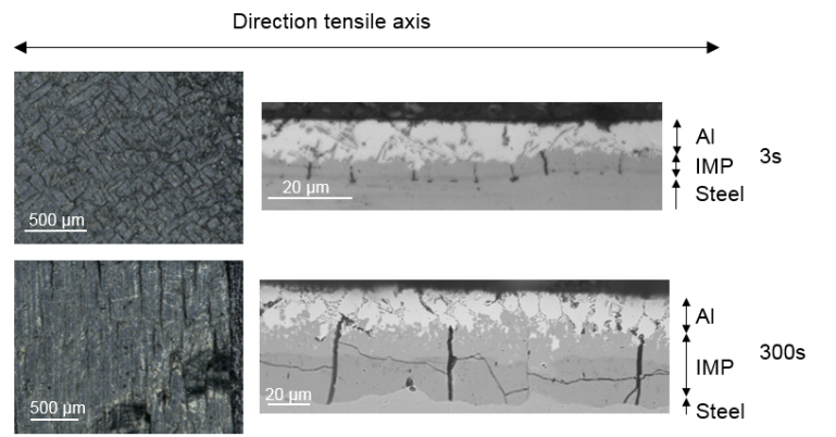 Steel can be protected against the deteriorative effect of corrosion by applying a metallic coating, for which aluminium is widely used. The metallic coating is most often applied by hot-dip aluminizing. During the dipping of steel in Al interdiffusion occurs, giving rise to the formation of intermetallic phases (IMPs) which are hard and brittle.