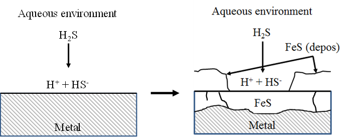 In the oil and gas industry, the presence of H2S gas might induce sulfide stress cracking (SSC). The interaction between steel and the H2S containing surrounding environment also results in the formation of a FexSy corrosion product. Moreover, hydrogen is also generated during this corrosion process and can be absorbed in the material.
