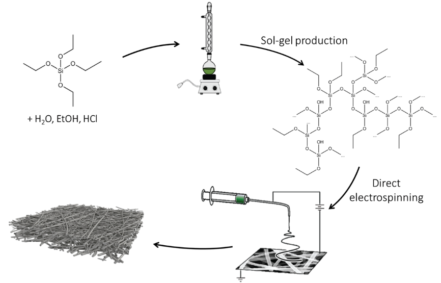 - Geltmeyer, J., De Roo, J., Van den Broeck, F., Martins, J., De Buysser, K., & De Clerck, K. (2016). The influence of tetraethoxysilane sol preparation on the electrospinning of silica nanofibers. JOURNAL OF SOL-GEL SCIENCE AND TECHNOLOGY, 77(2), 453–462. https://doi.org/10.1007/s10971-015-3875-1