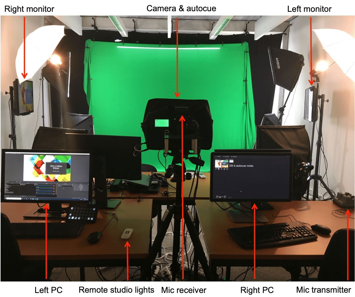 De opnameruimte op de zevende verdieping van het iGent-gebouw (lokaalnummer 170.010) beschikt over een camera, microfoon, lichtschermen, monitors, teleprompter en een manshoog green screen. In de handleiding en de instructievideo vind je terug hoe je ze kan gebruiken voor (1) opnames vanop camera en (2) opnames met een Powerpoint als achtergrond. Op termijn zal het ook mogelijk worden de studio voor livestreaming in te zetten. Wil je deze ruimte voor het eerst gebruiken, mail dan naar Nic Vermeulen voor technische ondersteuning.
