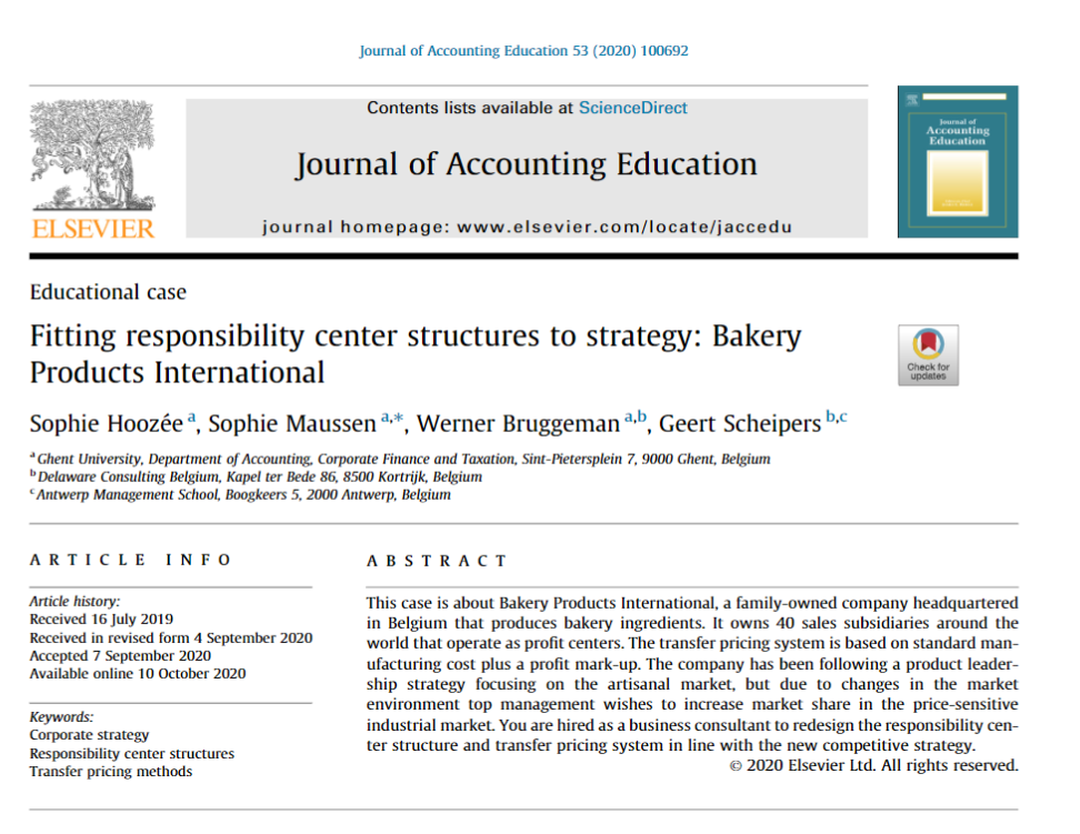 Reference: Hoozée, S., Maussen, S., Bruggeman, W., & Scheipers, G. (2020). Fitting responsibility center structures to strategy: Bakery Products International. Journal of Accounting Education, 53 (in press).
