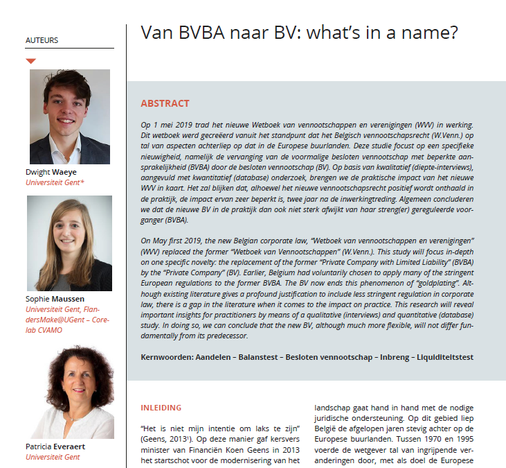 Reference: Waeye, D., Maussen, S., & Everaert, P. (2022). Van BVBA naar BV: what’s in a name? Accountancy & Bedrijfskunde 2022(2): 20-38.