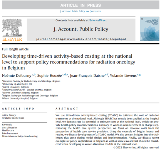 Reference: Defourny, N., Hoozée, S., Daisne, J.-F., Lievens, Y., forthcoming. Developing time-driven activity-based costing at the national level to support Belgian policy recommendations for radiation oncology. Journal of Accounting and Public Policy.