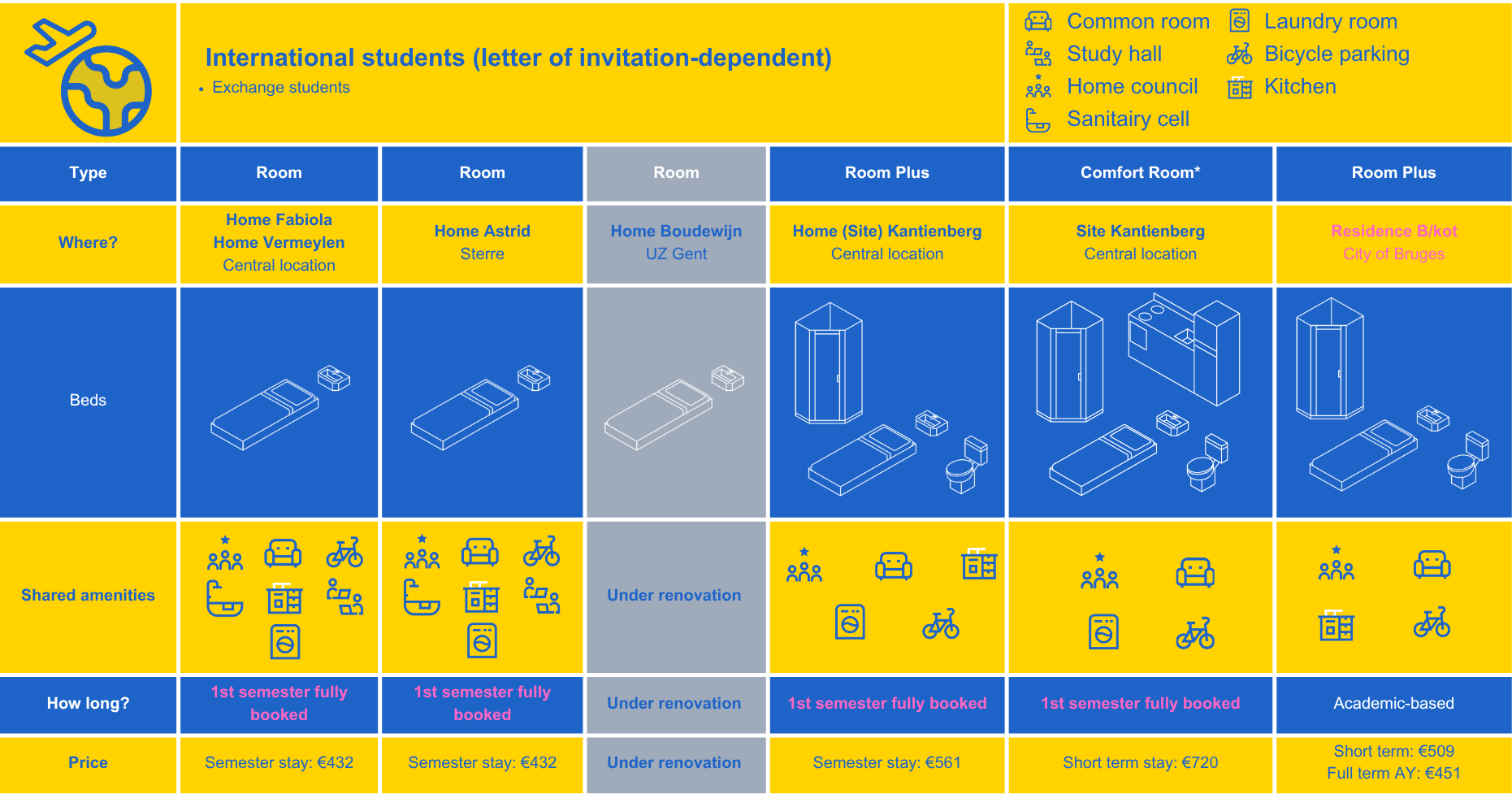 - Only students with a letter of invitation for one semester or a period of less than four months can apply for accommodation in Ghent.