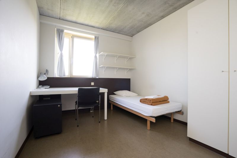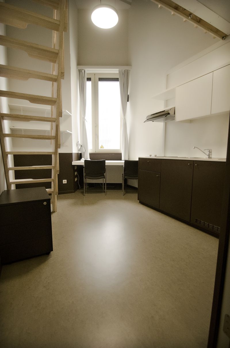 - Furnished room: wardrobe, bed (mattress, pillow, sheets and blanket provided); desk and two chairs.