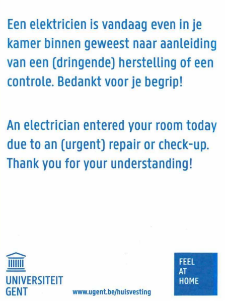 - You will be notified the visit or repair has been finished by a post-it on your door