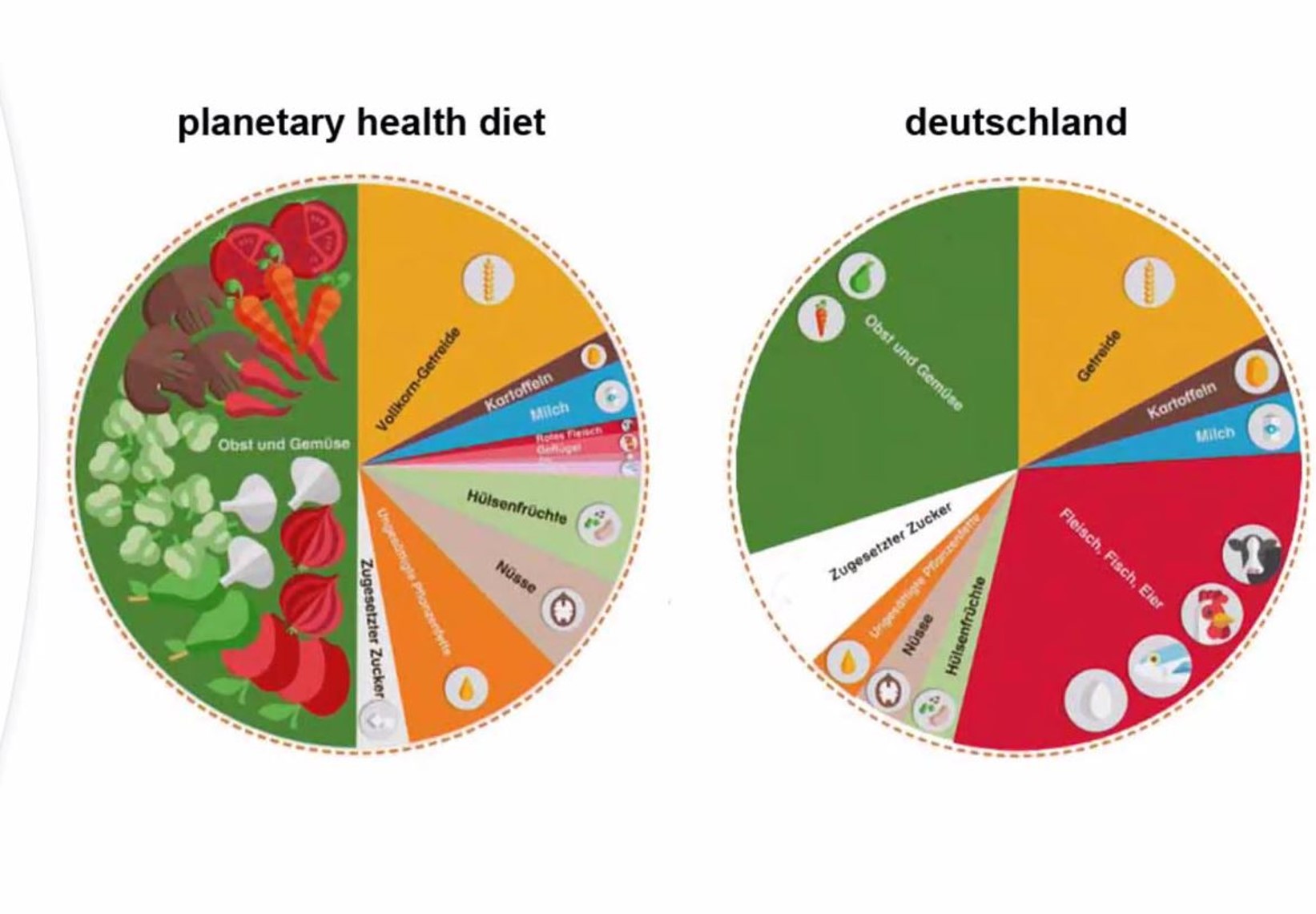 • In 2019, the first comprehensive scientific report on what constitutes a healthy diet within a sustainable food system, was published. Check this figure of a planet health diet in comparison with our diet.
