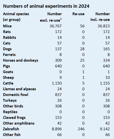 1 Re-use refers to the number of animals that were used previously in another test. There are strict rules governing re-use (cf. severity rate, see welfare of laboratory animals).