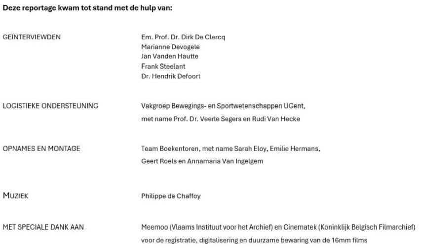 De filmpjes en thesissen, gemaakt in het kader van bewegingsanalyse, bestuderen hoe de mens beweegt en hoe deze beweging geoptimaliseerd kan worden. Het zijn unieke opnames, gebruikt in onderzoek en tientallen jaren getoond aan studenten tijdens de lessen biomechanica.