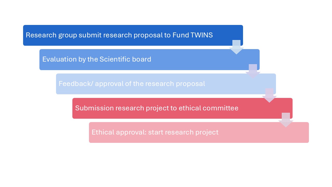 The study has an open policy in regard to collaboration with other research groups. Requests for collaboration should primarily be pointed to the chairmen of Fund TWINS Prof. dr. Steven Weyers. These requests are discussed in the scientific board regarding their study aims, overlap with ongoing studies, logistic consequences and financial contributions. After approval of the project by the scientific board, the project can be submitted to the ethical committee of UZ Gent for ethical approval.