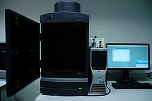 Het IVIS Lumina II-systeem omvat een gevoelige diepgekoelde CCD-camera, een lichtdichte beeldkamer, gasanesthesie, een temperatuurgecontroleerde fase en software voor beeldanalyse. Dit systeem maakt niet-invasieve visualisatie en kwantificatie van een fluorescerend of bioluminescent signaal van een levend dier mogelijk. Het kan ook worden gebruikt om ex vivo en in vitro monsters te visualiseren. Voor in vitro luminescente analyse van microtiterplaten, indien uniform verdeeld, is onze plaatlezer (ParadigmTM) wellicht beter geschikt.
