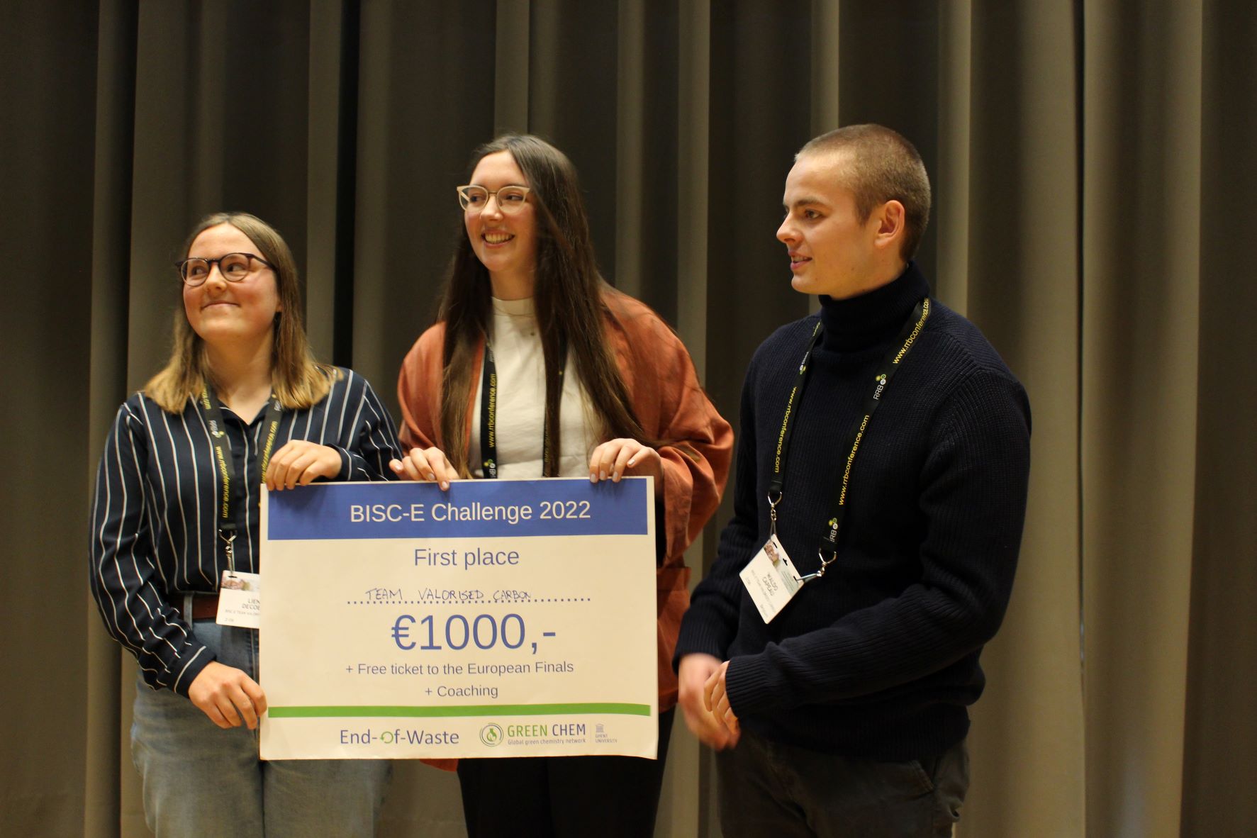 On 2 June 2022, the Belgian BISC-E competition took place at RRB 2022 in Bruges. With their innovative idea to turn your fruit waste into a novel activated carbon solution, Valorised Carbon won the national final of the Bio-based Innovation Student Challenge (BISC-E), organized by the End-of-Waste/RE.SOURCE.BIO and GREEN-CHEM networks.
