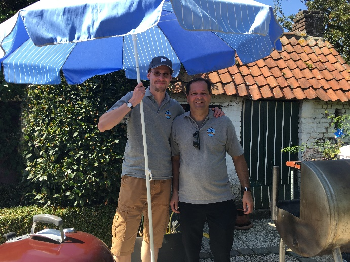 Figure 3. Team building with Prof. Matthias D’hooghe (L) and Prof. Christian Stevens (R).