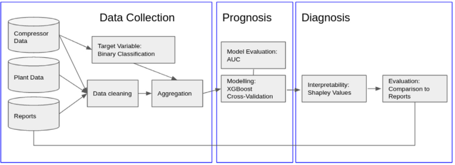 Condition-based maintenance (CBM) is becoming more commonplace in many industries. Previous research leveraging machine learning has provided high accuracy in the predictive aspect of machine breakdowns. However, the diagnostic aspect of these approaches is often lacking. We developed a supervised machine learning approach, with the goal of both prediction and diagnosis of machinery breakdowns, emphasizing the latter. To achieve this, it uses an XGBoost model trained on a combination of sensor and report data, and enriches the model with Shapley values for diagnostic insights. We have shows that this combination of statistical methods, combined with a proper data treatment, can be used to great effect and can vastly improve the diagnostic value of machine learning approaches. The insights that follow from the analysis can subsequently be leveraged by plant operators to optimise cost and operational excellence in CBM strategies .