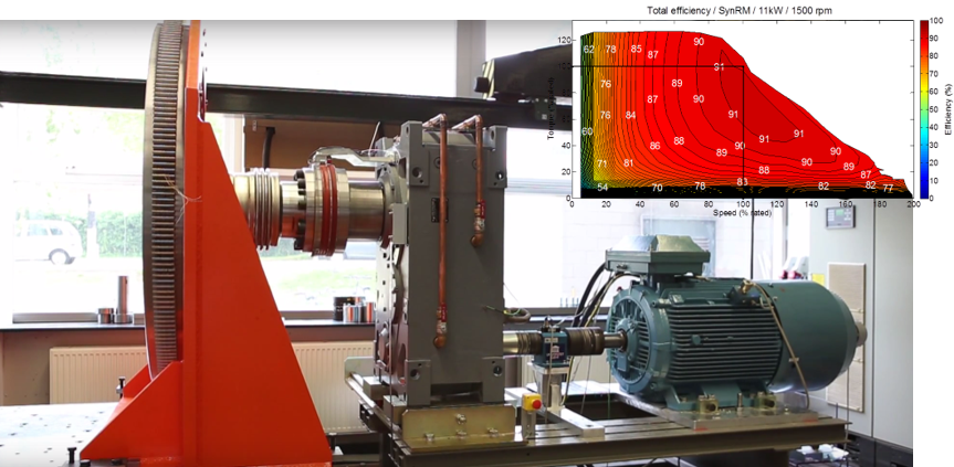 For lower powers we have various setups where we can test and characterize stepper motors (starting from 1 Nm), high-speed motors (up to 22kW, 15000 rpm, 1000 Nm), belt-transmissions (up to 15 kW, 3000 rpm) and gearboxes (straight and in-line, up to 15 kW, 1000 Nm