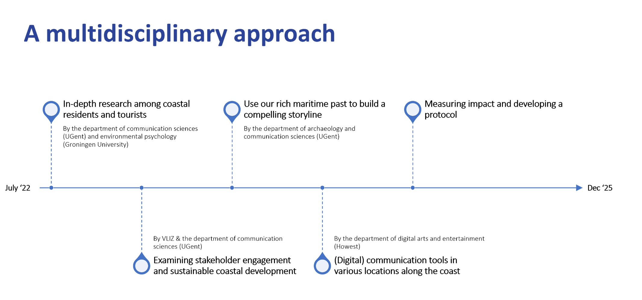 Stakeholder engagement aims at enhancing the sustainable transition of the Flemish coastal region through deeper involvement, transparency, and democratic accountability. This work package aims at fostering dialogue among residents, tourists, policymakers, and industrial stakeholders to develop participatory strategies that support sustainability initiatives.