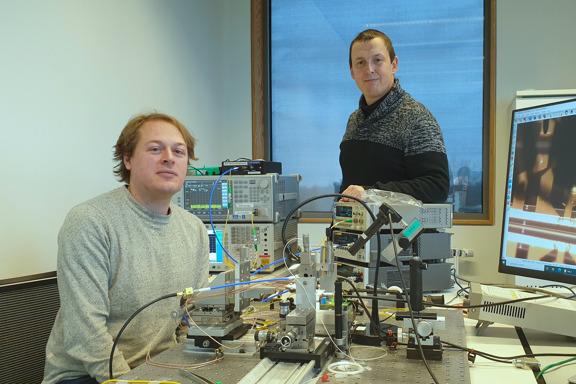 UGent-onderzoekers Wim Bogaerts (rechts) en Bart Kuyken (links) hebben elk een ERC Proof of Concept Grant gewonnen. Hiermee kunnen zij de kloof overbruggen tussen hun baanbrekend onderzoek en de eerste fasen van commercialisering. Beide professoren zijn verbonden aan de Photonics Research Group in een nauwe samenwerking tussen de UGent en IMEC.