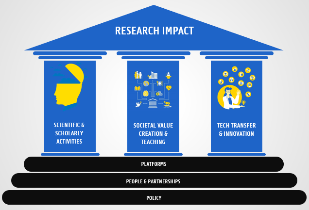 - Twee elkaar aanvullende beleids- en ondersteunende kaders vormen het spectrum van socio-economische valorisatie en impact. Beide zijn nodig om een brede aanpak na te streven: