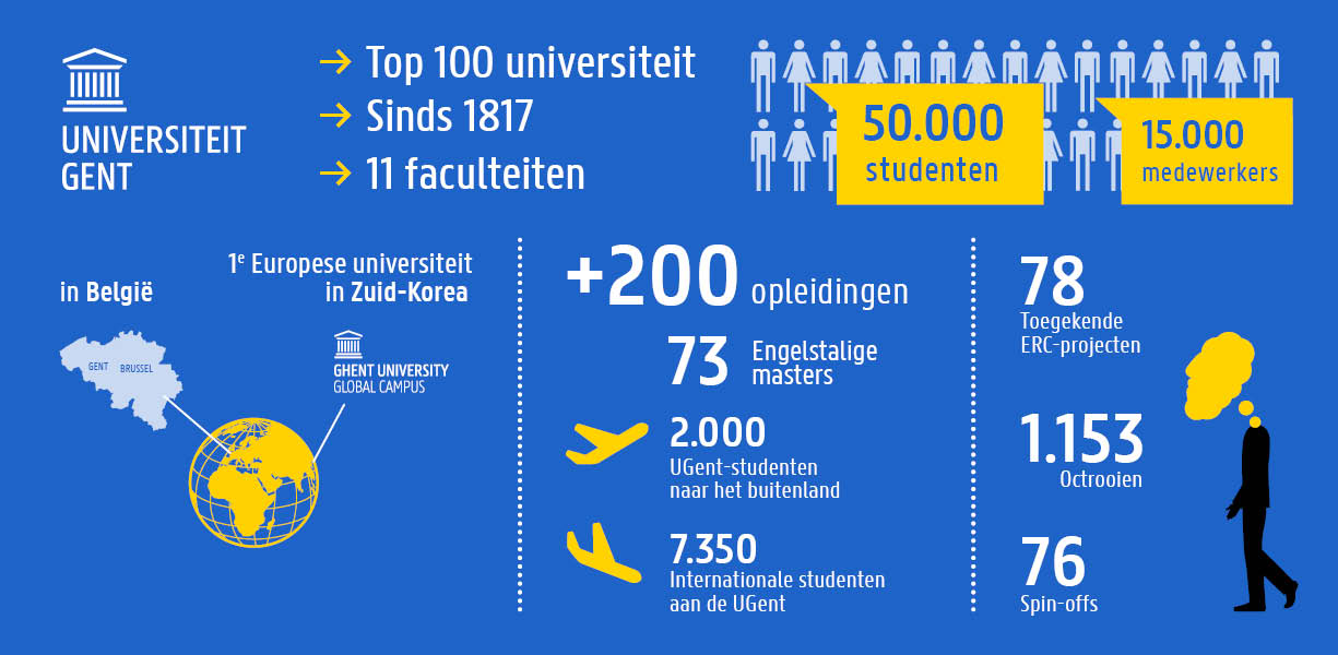 Over de Universiteit GentDe UGent is een internationaal gerenommeerde, open, pluralistische en maatschappelijk geëngageerde universiteit in België. Ons credo is 'Durf Denken'.