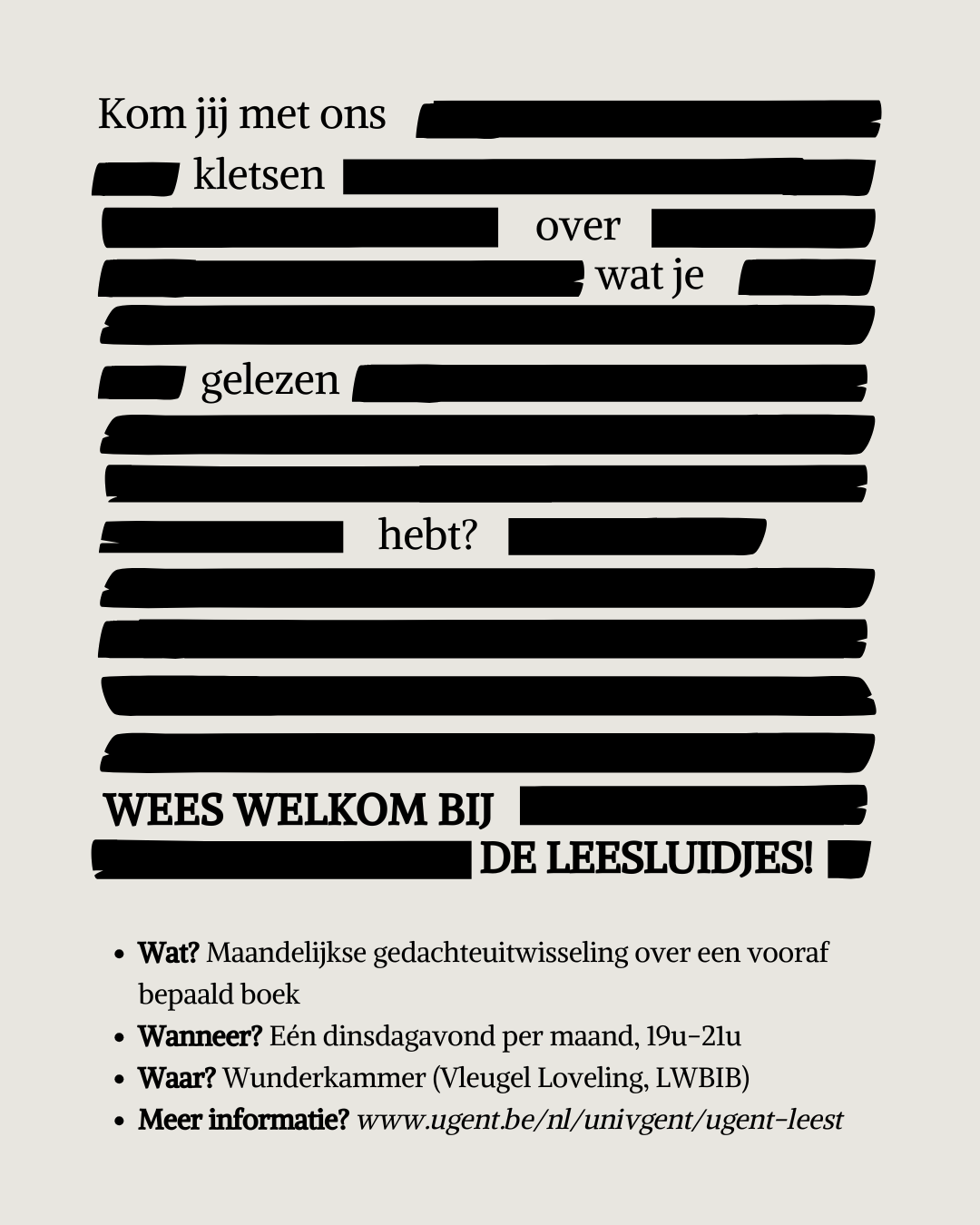 Hou deze pagina in de gaten voor meer nieuws rond UGent Leest.