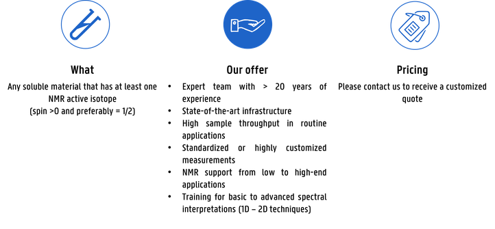 There are different ways to collaborate with the expertise centre, ranging from open access self-service measurements to dedicated, in-depth analyses performed by the NMR staff