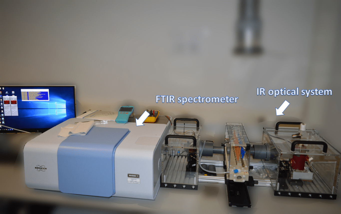 - FTIR spectroscopy: absolutely calibrated, in-situ measurement optical bench