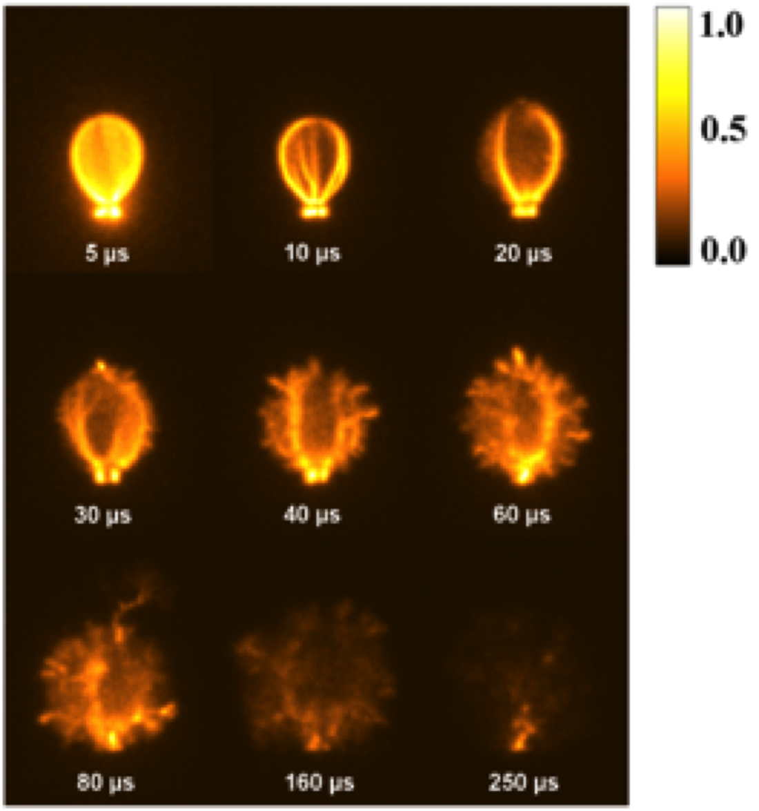 Figure: Time-resolved dynamics of single bubble breakdown.